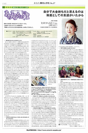 青山学院校友会「あなたと青山学院」春号 ”あのころ、そして、いま”に登場しました。 (幼稚舎から大学&OBまで年二回23万部発行) ![]() クリックすればご覧になれます |