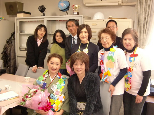 来年創立35周年を迎える横浜市立新吉田第二小学校は、なんと私が日課(寒い時期はさぼっているが)の散歩道にしている早渕川沿いに隣接する小学校だった。この辺りは散歩しながら足元の野良猫たちと挨拶しながら歩いているので小学校に気づかなかったのだ。 柳下睦子校長先生にそのことをお話したら、「是非、お散歩のついでに学校に寄ってコーヒーでも召し上がってください」と優しいお言葉をいただいた。早渕川の川沿いの道は空気がいい。いつも誰かがジョギングをしていたり、散歩をしていたり、登校下校時は「はやぶちっ子」と呼ばれる新吉田第二小学校の子供たちの元気な声が響く。そんな子供たちの声が校庭に面した昇降口の上にある理科室の窓にポスターで貼ってあった。「助けあって笑顔いっぱい第二小」子供たちの作った標語である。元気いっぱいの生徒の中には「全日本ジュニア空手道選手権大会」小4女子30kg未満の部で優勝した鈴木里菜ちゃんもいる。新吉田地区もインフルエンザが流行しているので、予防のためにも子供たちは大部分が白いマスクをつけていたが、寒い中を長い時間しっかり静かに講演を聞いてくれて、その後の豆紙人形の鑑賞時間も目をきらきらさせながらじっくりと見学をしてくれた。お人形を見ながら「ありがとうございます」「また 来てください」と次々に声をかけてくれたり、「生きることの大切さを知った」「誰かを差別していないかと言うことを考えた」などと嬉しくなるような感想を述べてくれた子供たち、低学年の代表からは、私たち心の宅急便メンバー全員に折り紙で色とりどりの花や、鶴、魚、ハートやリボン、コマなどを折って作った心のこもった美しいレイを、高学年代表からは、きれいな花束を頂きました。はやぶちっ子の皆さん、ありがとう!打ち合わせの段階からご参加くださった道徳担当の生田福子先生をはじめ、高学年の司会をしてくださった長谷川恭子先生、CDの操作をしてくださった山口紗絵子先生伊藤貴雄先生、色々お手伝いくださった先生方、ありがとうございます。終了後、校長先生、直井毅副校長先生、見守り隊の大井さんと共に美味しい海老フライの給食もいただき、私たちはお腹も心もいっぱいになりました!