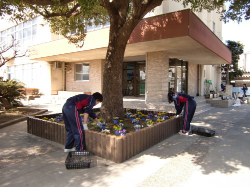 23年度最後の「心の宅急便」は 川崎市では初めての川崎市立日吉中学校である。先週の新吉田第二小学校に続き、今日も快晴!本年度の「心の宅急便天気模様」もお天気に恵まれた一年だった。「今年もお天気は全勝だったね!」とメンバーと話しながら日吉中学校の正門に着いた。予定の時間より大分早い。学校側の準備もあることなので時間になったらお電話をしようと思ったら、ジャージ姿の生徒たちがバラバラッと駆けつけて「どうぞ!」と正門を開けてくれた。「ありがとう!」とお礼を言うと、後ろからやってきた生徒達も口々に元気よく「こんにちわー!」と声かけをしてくれる。皆が手に手に小さなスコップを持っていた。出迎えてくれたのは三年生。在校生への愛の贈り物として最後の花道を飾るすみれの花をみんなで植えていたのだ。この学年は二年生の時、淋しかった中庭を復活させるため、また受験の生徒を励ますためにすみれの花を、そして新入生にはチューリップを2000株 植え、一年中花が絶えない活動を始めたのだと言う。「中島みどり校長先生のお手紙にあったように、この学校の生徒たちは本当に元気をもらうような子供たちの挨拶ですね」と感心すると「三年間、挨拶!アイサツ!と気持ちよく号令をかけてくださったみどりパワーの成果です」と三年生学年主任の小針マサ子先生がにっこり答えた。この地域は一小一中、小学校に入ると9年間一緒に過ごす。幼稚園からなら12年間、数は少ないが保育園から15年間一緒の生徒達もいる。地域の協力も密で、一昨年15周年を迎えた「おやじの会」があったり、子ども会から育って近所のオジちゃんオバちゃんの温かい目に包まれ育っているせいか、都会の子には珍しいくらい素直だ。「うちの子たち、自慢じゃないけど服装が乱れていたり茶髪であったりする生徒が一人もいないんですよ」と中島みどり先生が目を細める。講演後の「誰か質問のある人」と教務主任&生徒指導主任の大和田徹先生が生徒達にマイクを向けると、臆せずおおらかに質問や感想を述べてくれた。都会の子は小学校高学年くらいから人前で目立つことを嫌がり、なかなか大勢の前で質問や感想意見を言わないものなのだ。思わず、「勇気を持って質問や感想を述べてくれたみんなに拍手!」と言ってしまった。勿論、大きな拍手が広い体育館に鳴り響いた。 こんないい時間をくださった中島みどり校長先生、平野耕一教頭先生、ありがとうございました。体育館のセッテイングをしてくださった津坂久遠先生、藤巻優先生、ありがとうございました。CDの操作をしてくれた生徒たち、豆紙人形の飾り付けを手伝ってくれた生徒達、来た時から帰る時まで「コンニチワ」と「アリガトウ」の声かけをしてくれた生徒たち、ありがとう!皆さんのいい明日を祈って!!