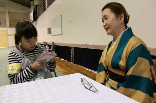![]() 一生懸命取材する子供記者の山下千結実さん |