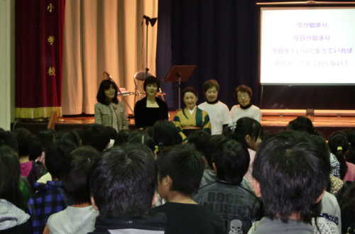 ![]() 「ありがとうの花」 全校生徒の大合唱 |