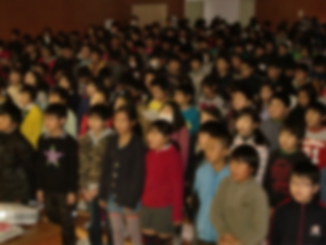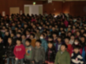 | 東本郷小学校の児童には「歌よし」「図工よし」と色々自慢できるものがありますが、中でも靴箱の整理整頓はピカイチです。一年生から「綺麗に並べる」ことを頑張っています。 生徒数が815人と多いので靴箱に仕切りがないのですが、こんなに綺麗に並べていました。 元気で明るく楽しい東本郷小学校の皆さん、笑顔を握手を一杯ありがとう! そして 寒い中を雪かきをしてくださったり、舞台の準備や進行を手伝ってくださった先生方、ありがとうございました。寒い季節ですが、心がぽかぽかになって帰りました。 | |