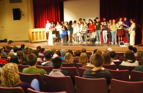 ![]() シアトル イングルモア高校にて ![]() 講演朗読風景 |