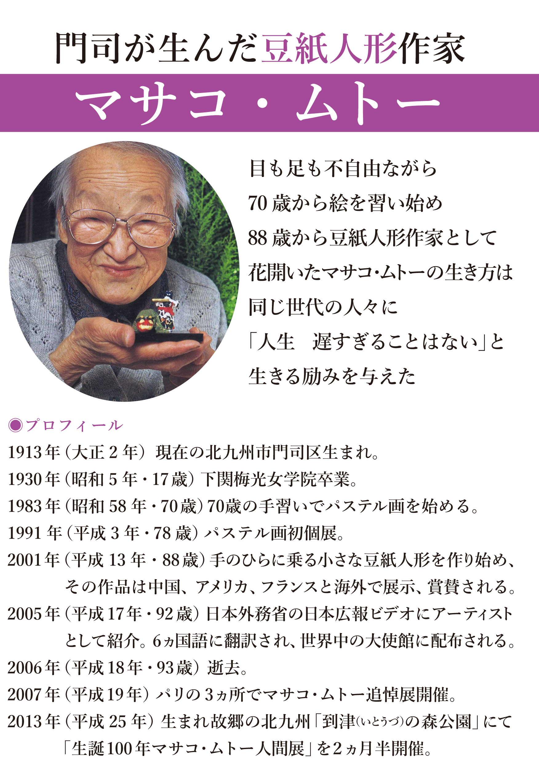 長い間、国内外を旅した母・マサコ・ムトーの豆紙人形が