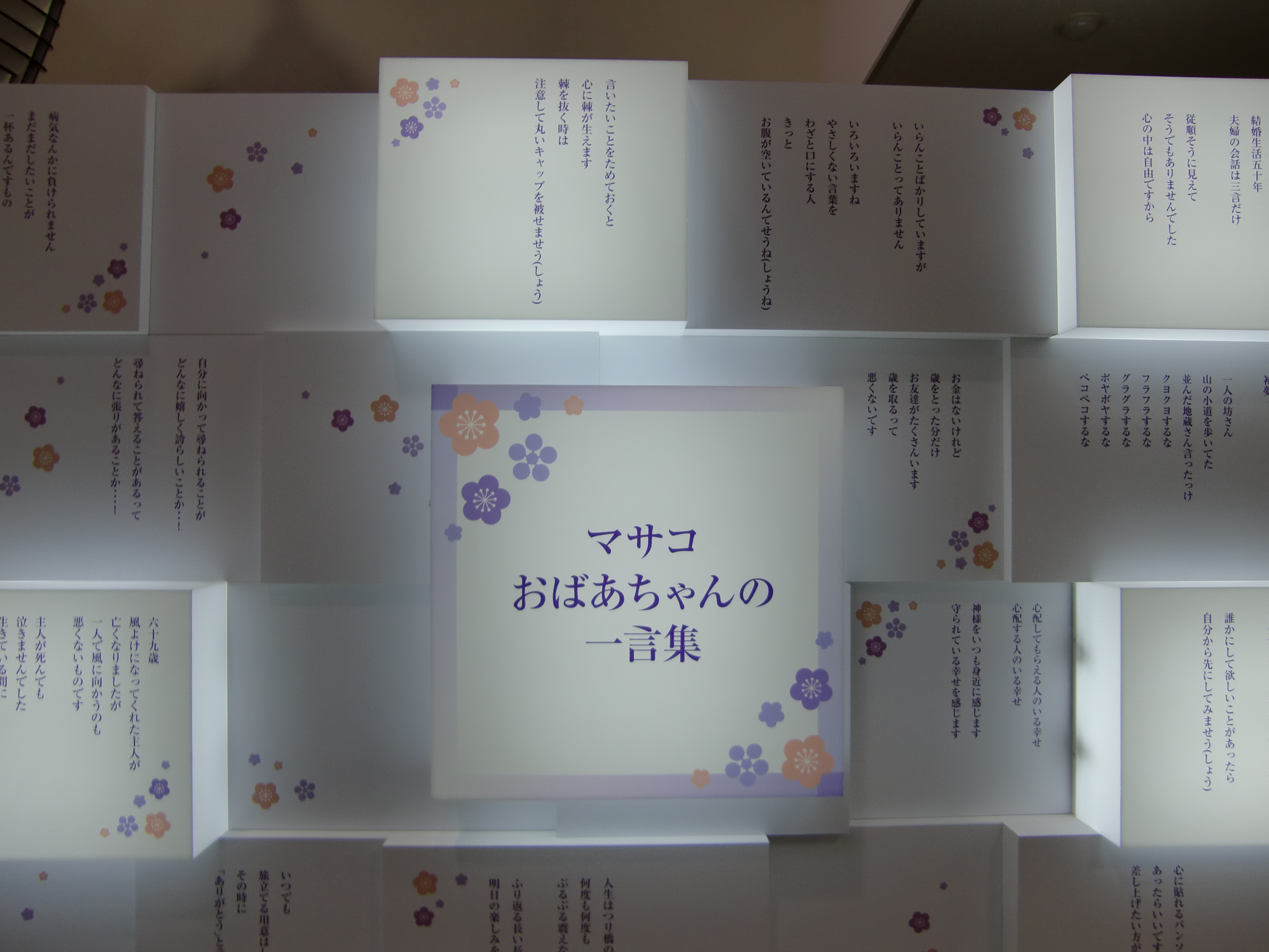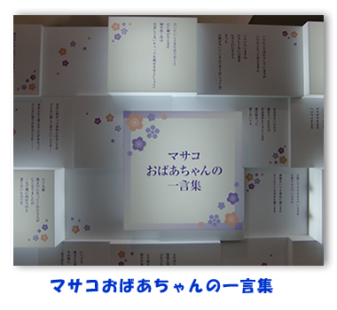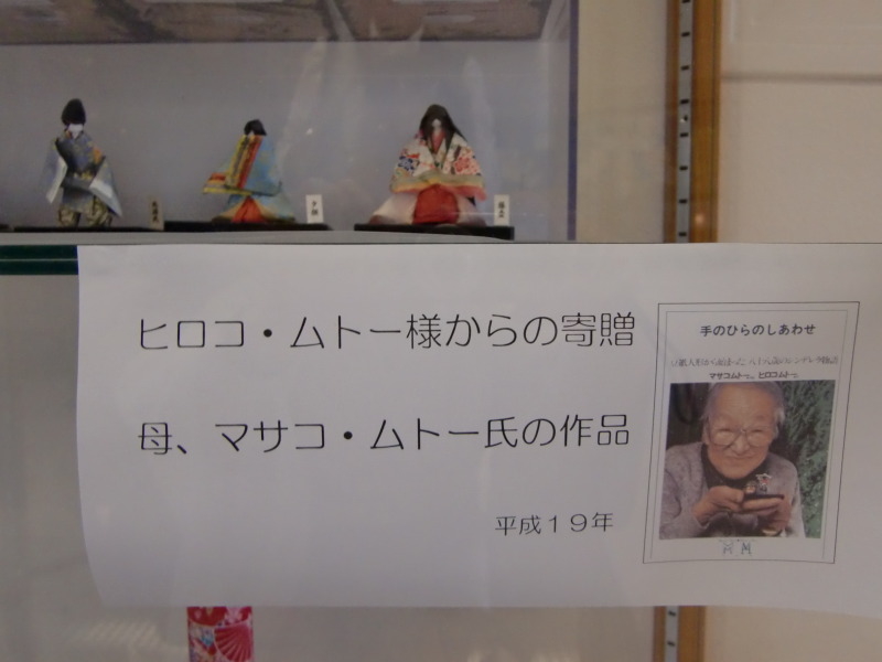 エスパスジャポン、日本人学校、アメリカンホスピタルで2005年から9年間、それぞれの場所で母の豆紙人形は大事に大事に愛され展示され続けていたことを見せてもらい、私たちはとても感動しました。母も天国で作家冥利につきていることでしょう。