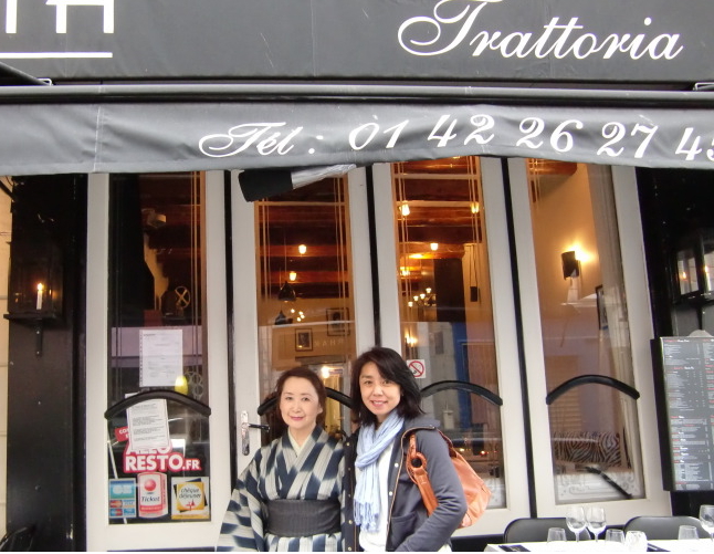 ![]() パリの女神 理子ちゃん イタリアンレストランの前で 理子ちゃんは7年前、ラ・フォンテーヌ校で母の「追悼展」の展示公演をした時のラ・フォンテーヌ校PTA役員ですが、責任感の強さ、迅速な対応、的確で温かく細やかな気遣いに感激し、それ以来の親友です。パリ生活26年、フランス語はべらんめえ口調、カルトナージュの工房を開いて教えている才色兼備の健康美人で、6年前からマラソンに嵌り、先月も42キロフルマラソンに参加したばかりです。今年は男性でも過酷な72キロマラソンに挑戦するとか!カッコイイ「パリジェンヌ」です。 ファッション関係の仕事で、小田和正似のご主人の実さんは、写真の通りダンデイで素敵な男性。さり気なく細部に渡りケアしてくださるその優しさは流石理子ちゃんのご主人! 7年前もすっかりお世話になりましたが、今回もパリに着いた日に国内国外使い放題の携帯を貸してくださり、「困った時はいつでも、何でも言ってください!」とパリの旅をサポートしてくださった「パリのナイト」です。 |