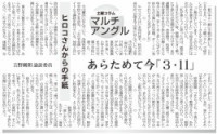 ヒロコ・ムトーの新刊「一度しかない人生」が山形新聞の 「土曜コラム マルチアングル」に、
