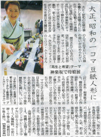 毎日新聞 5月25日(金)「母娘展:大正・昭和の一コマ、豆紙人形に「再生と希望」 神楽坂/東京」(福島良典記者)