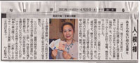 4月20日 毎日新聞夕刊 (関東版)「人・模・様」(上杉恵子記者)