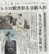 4月26日 北九州朝日新聞 「大正レトロ豆紙人形 門司港に帰郷」