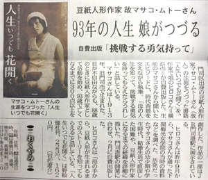 朝日新聞 5月21日(月)亡き家族思い豆紙人形作り 朝刊 東京版 (後藤 隆之記者)
